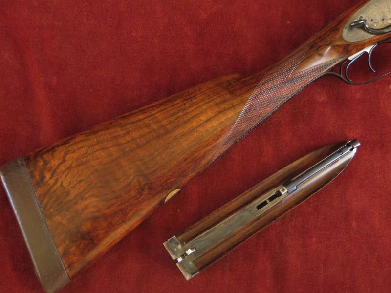 a 1" leather recoil pad. The forend has two wood inlet repairs