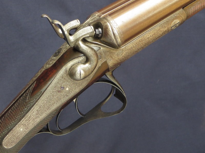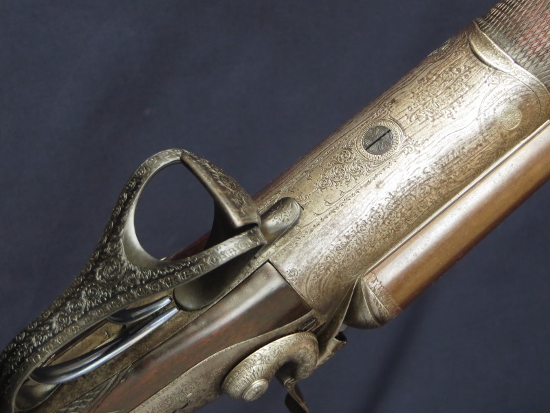 the rear comb of the stock and a 3/4” leather covered recoil pad.