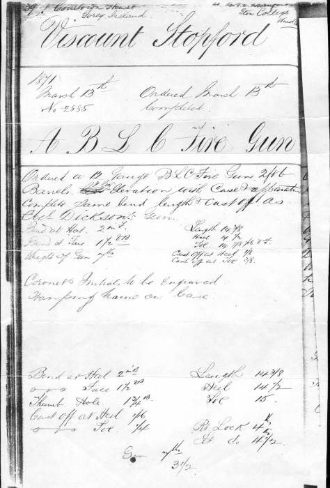 this gun was ordered on 13th March 1871 by Viscount Stopford (1853-1937)