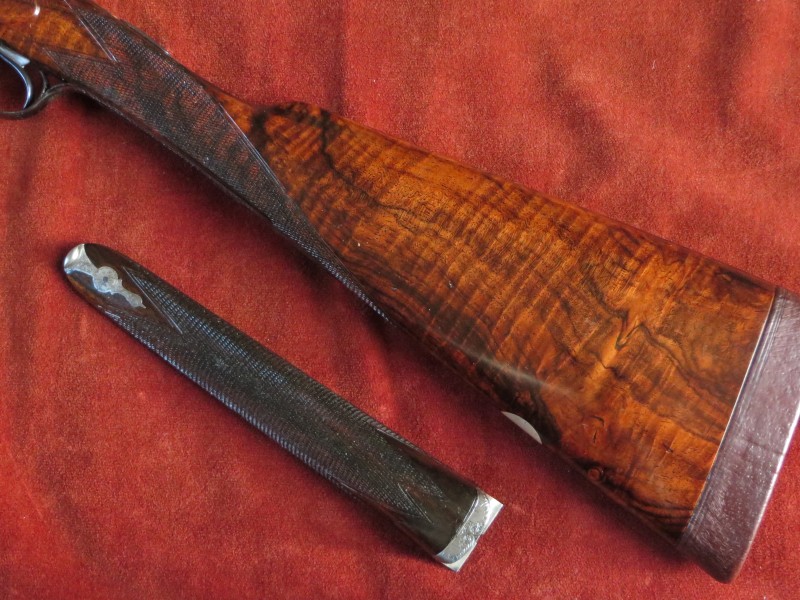 finished with a 1” leather covered recoil pad. The forend is fitted