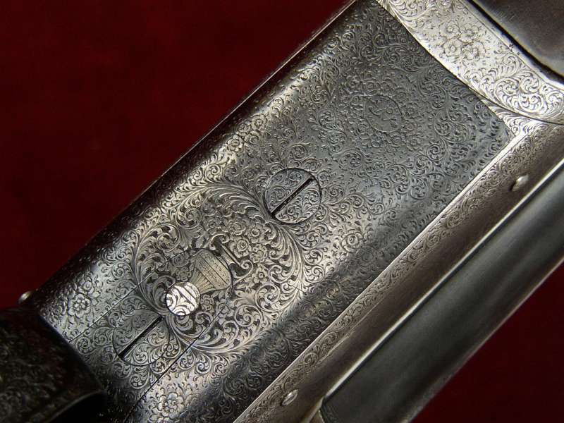 urns, bouquets and trade mark on base plate. Engraved breech ends.