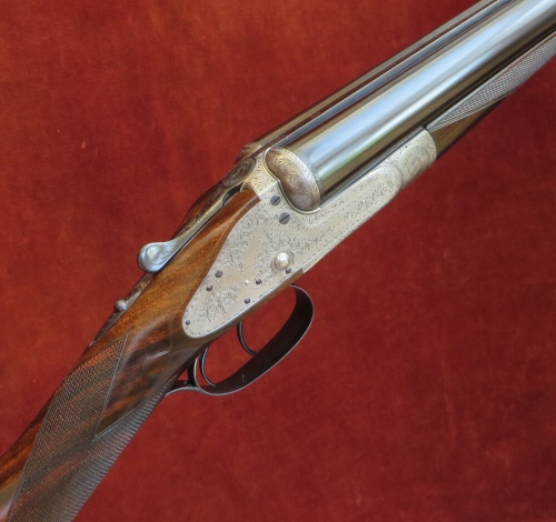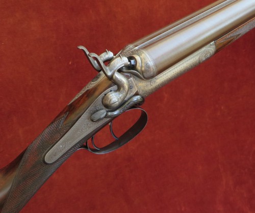 Royal from 1891. Rebarrelled by the Makers in 1909, it has 30” steel barrels, 2