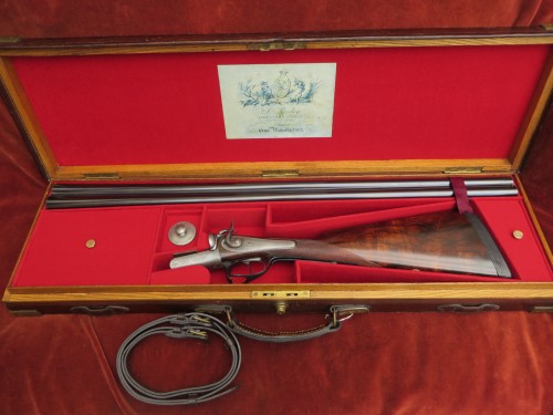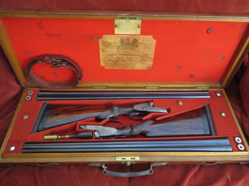 Stephen Grant 12b Sidelever Hammergun no 4247 in its Oak-lined case.