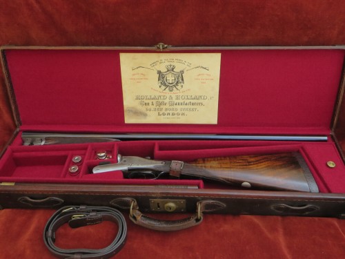 16b SL by Holland & Holland, cased in a nice old but relined leather case.