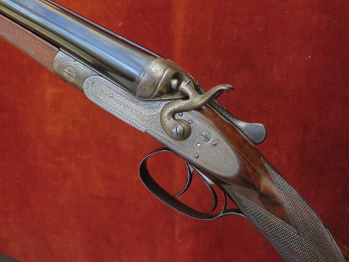 At proof there is a very pretty 20b boxlock by Dougall, a scallop-back 12b BLE by Blanch and a lovely Alex Henry 12b SLE with the most extraordinary vine engraved action.