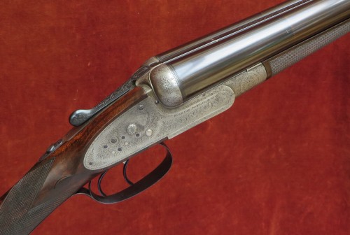 328 1892 WP Jones 12b backaction sidelock ejector, 30” x 2 ½” nitro damascus barrels, 14 5/8” highly figured stock inc. 1” leather covered recoil pad. Dismissed by some as ‘just another Birmingham gunmaker’, WP Jones was actually a very significant player in the gun trade, patenting a wide range of mechanisms and licencing a very successful try-gun design to both London’s Holland & Holland and Trulock & Harris in Ireland. The very attractive SLE we have here is finished to a high standard and would be equally at home on the clay ground or hunting field.