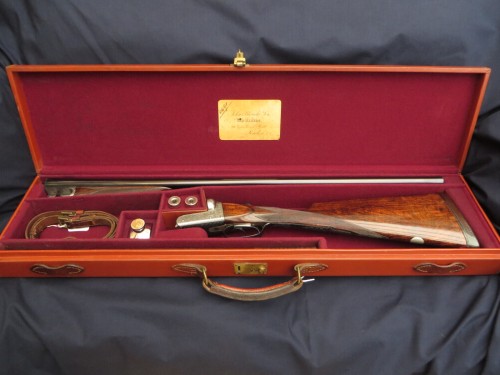 1890 Holland & Holland 12b 1st Type Royal with two sets of barrels, both 30”, one 2 ½” Nitro and the other 3” Nitro (1200 bar). Presented in a leather case blocked for both sets of barrels. This is an absolutely delicious example of H&H’s premier model. It features the best level of engraving and with its two sets of barrels can handle everything from soft, 2 ½” x 3/4oz up to the occasional 3” wildfowling load (not Superior Steel).